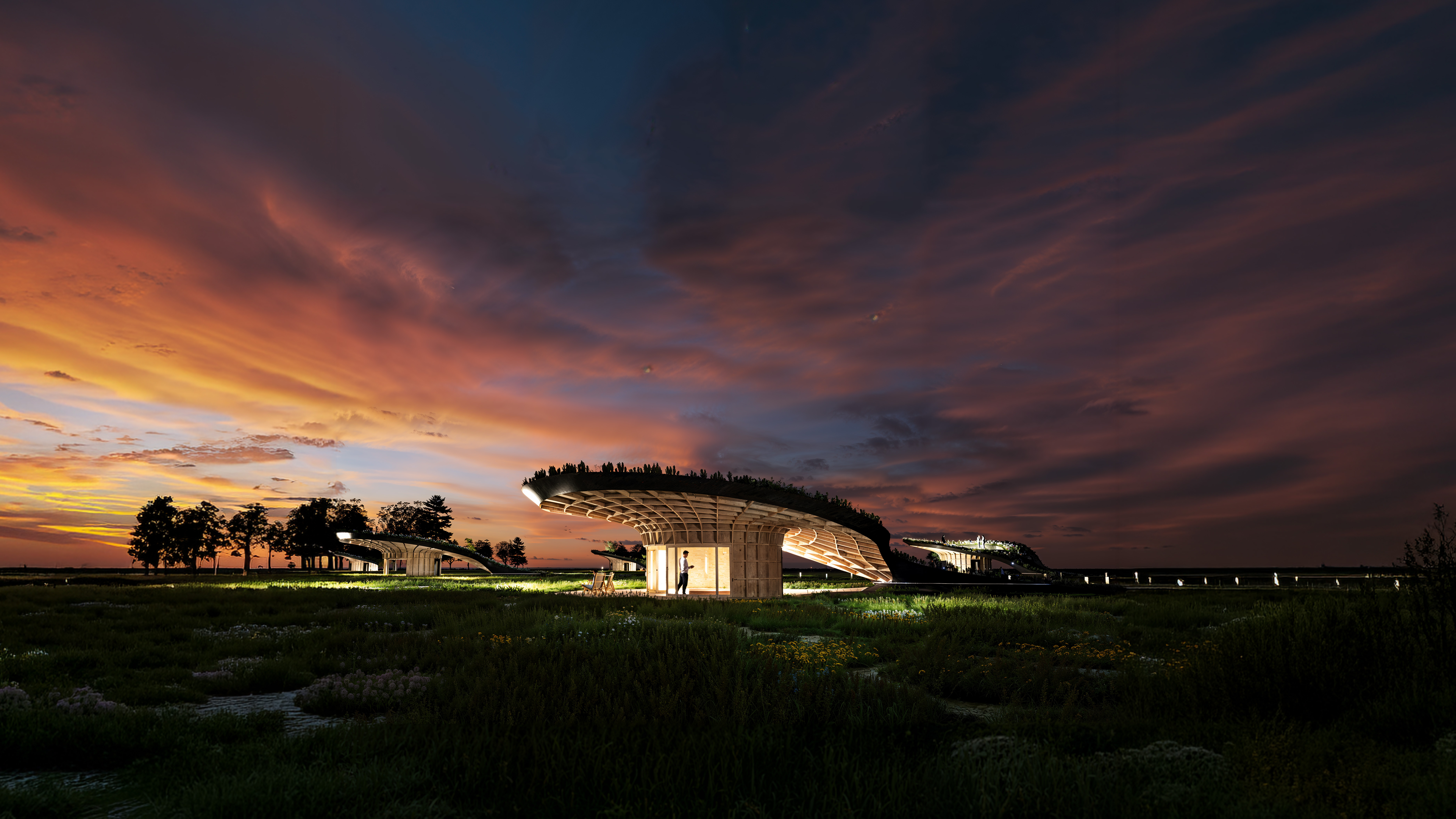 Conceived as an adaptable architectural prototype, this cabin retreat is designed as an instrument for total immersion in nature, capable of being deployed across various wild landscapes. The spatial focus is entirely directed outward—toward the stretching fields, adjacent waterways, and the vast sky.